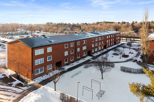 Fina och gröna innergårdar med lekplats, sittgrupper och tennisbana. Sopstationer med källsortering, restavfall samt matavfall.