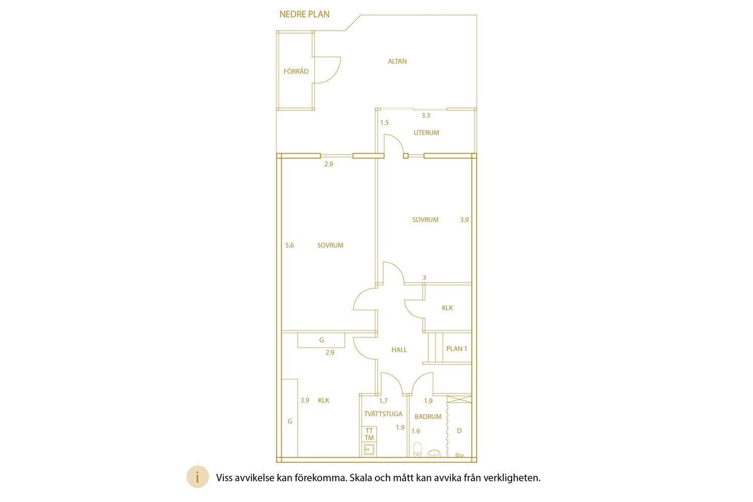 Nyrenoverad tvättstuga från 2023 med våtrumsmatta. Tvättho, tvättmaskin, torktumlare (-24) samt en garderob.
