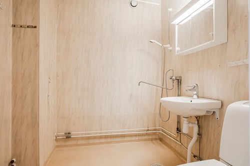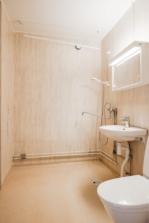 Löpande renovering av badrum med prio 1 vattenskada pga gjutjärnsbrunn.