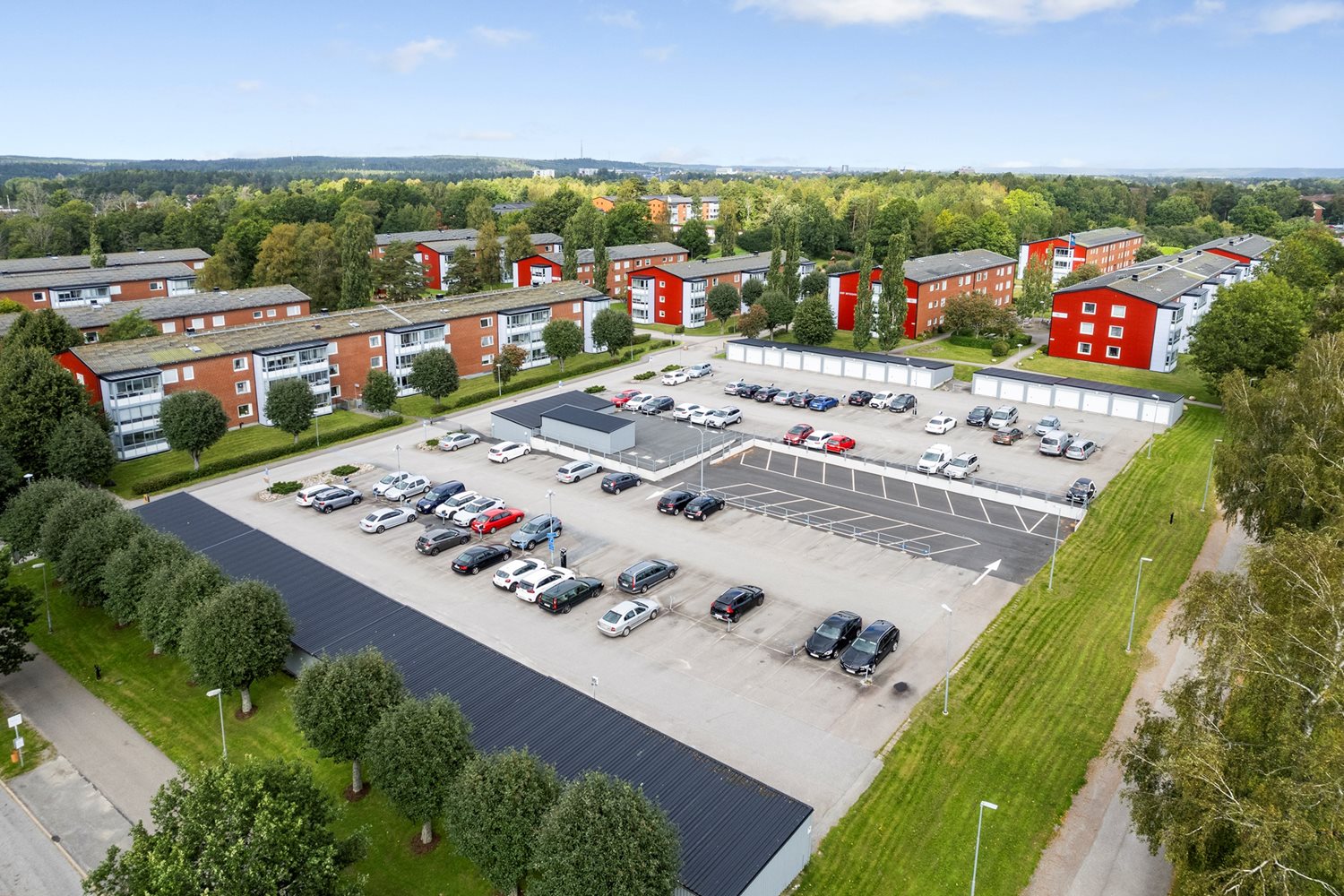 Föreningen har 55 st garage och 199 st parkeringsplatser (ca. 20 st är besöksparkeringar).