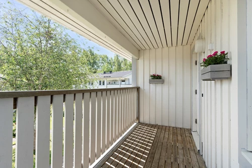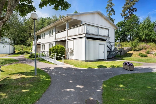 Ett förråd tillhör lägenheten och finns i anslutning till huset.