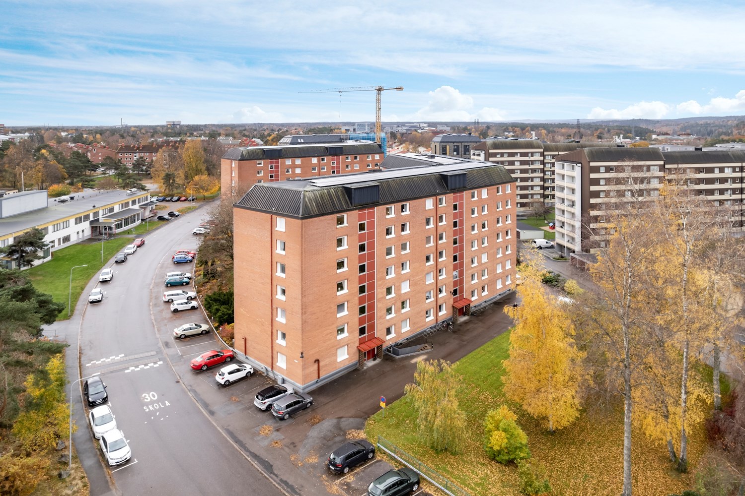 Föreningen innehar 70 st parkeringsplatser (200 kr/mån) varav 24 st med laddstolpe för el-bil (300 kr/mån). Till parkeringarna är det separat kö, beräknad kötid är ca. 1-3 år (16/10 -24). Föreningen hyr även 16 st externa parkeringsplatser.
