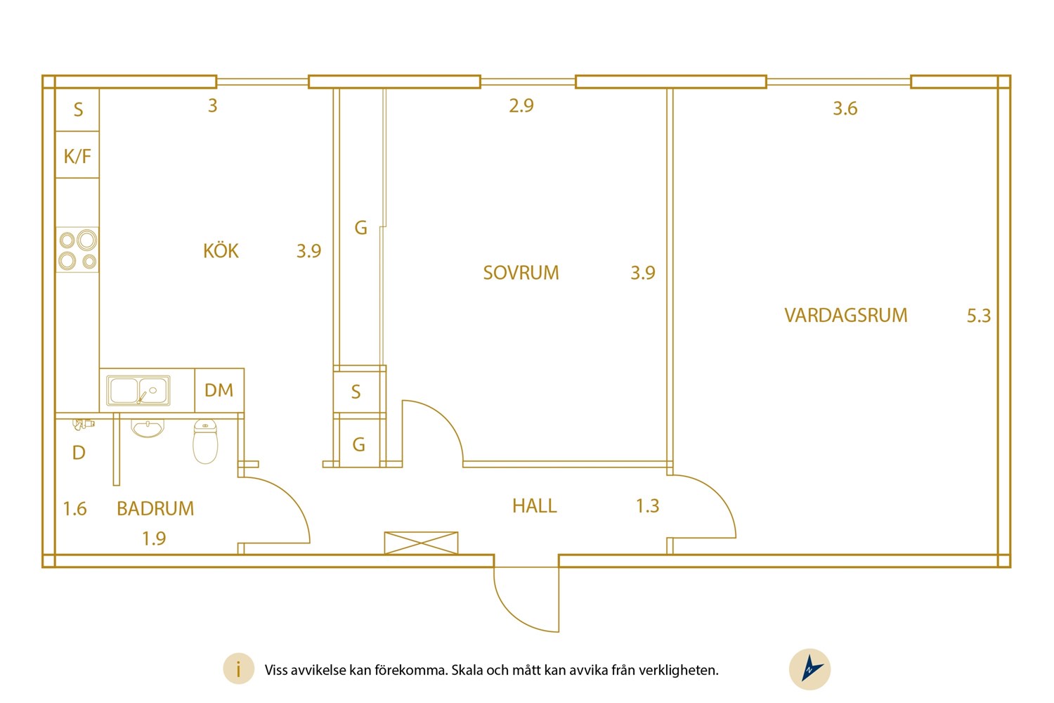 - 2 rok 119 st (53,5 kvm eller 61 kvm)