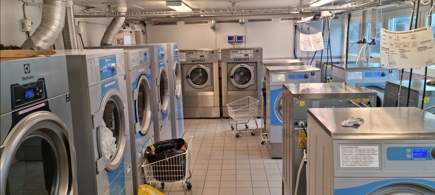 Centralt i området finns tvättstuga med flera tvättmaskiner, torktumlare och torkskåp. Tvättstugan är öppen dygnet rumt och både tvätt- och sköljmedel ingår (självdoserande maskiner).