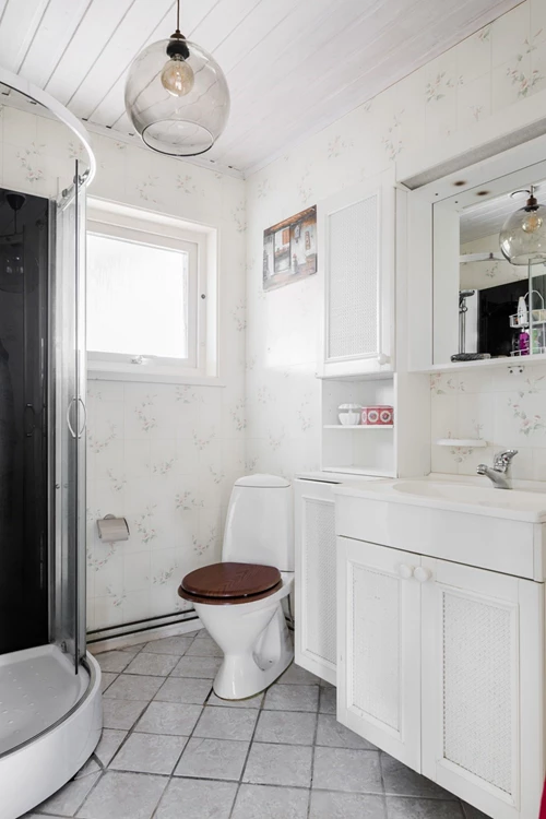 Ventilation: Mekanisk frånluft (F) i dusch/wc samt tvättstuga. I övrigt självdrag.