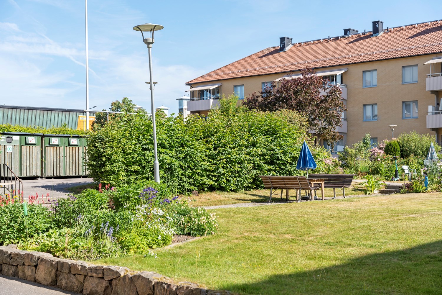 Mycket fin och välskött innergård som delas med de tre andra intilliggande HSB-föreningarna. Blomstrande gård med grillplatser.