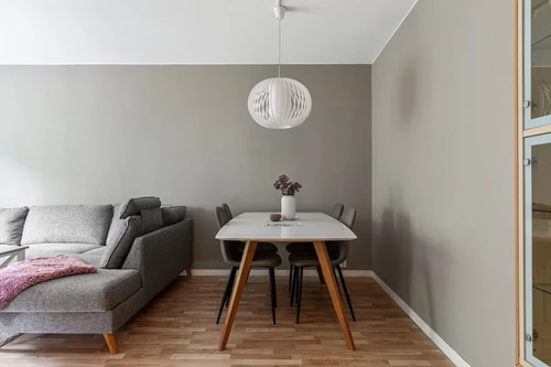 Nuvarande ägare målade om rummet och på golvet ligger ett snyggt golv i ekparkett.