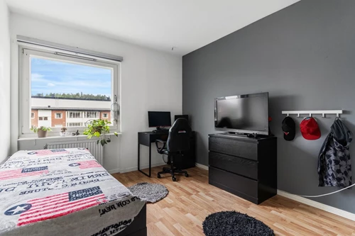 Välkommen till denna rymliga 4:a med två badrum och inglasad balkong! Lägenheten är belägen på 3:e våningen, så här bor du med ett högt och fint läge i området utan insyn. Välplanerad lägenhet med tre sovrum och ett rymligt vardagsrum med delvis öppen planlösing mot köket. Två fräscha och helkaklade badrum, den ena med tvättmaskin samt ett rymligt kök. Balkongen ligger insynsskyddat med ett fritt läge mot skogen.