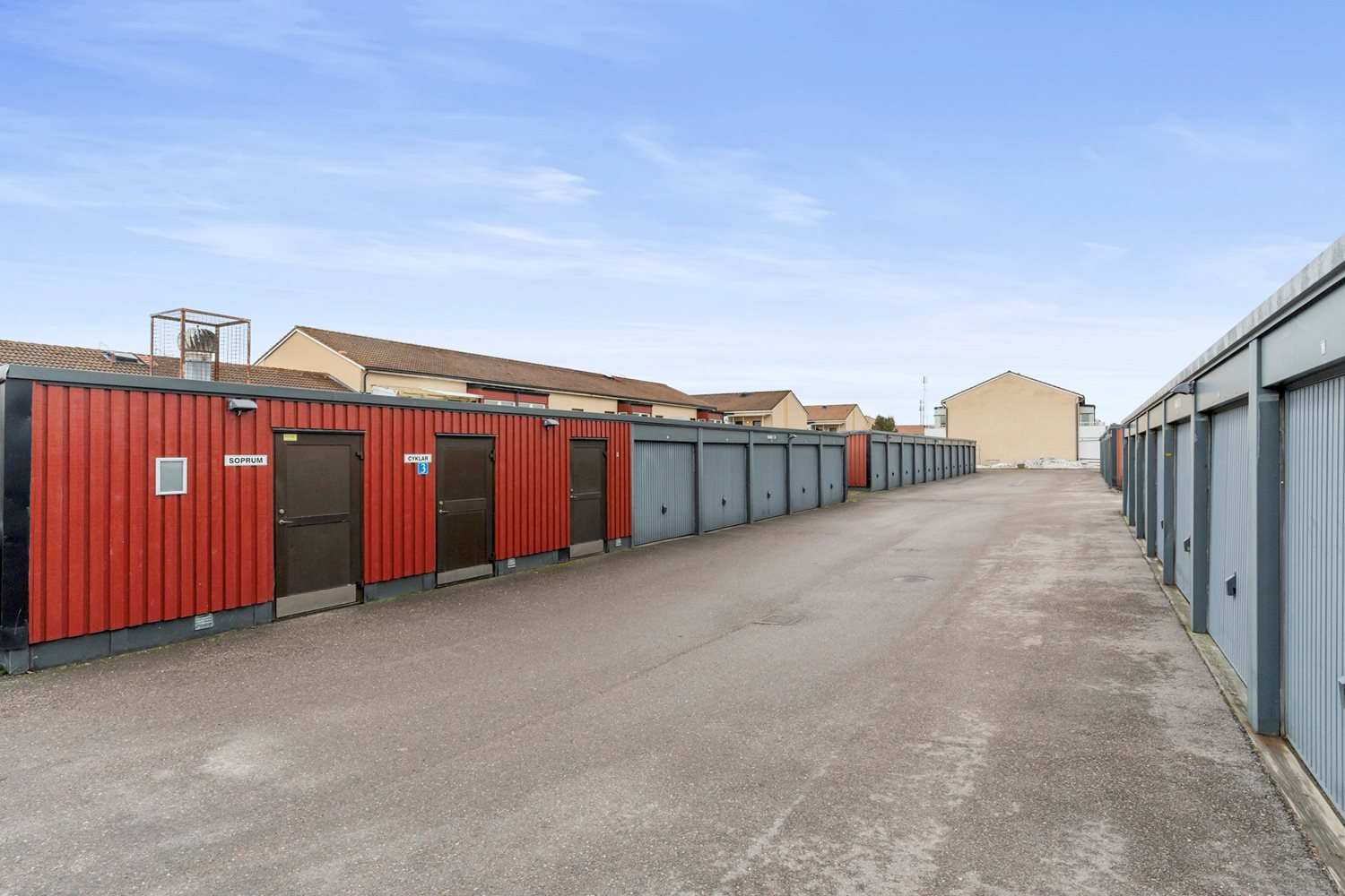 2026-2028: Översyn av förrådens papptak, vissa förråd har fått ny papp. Vindskivor och takfotsbrädor byts vid behov.