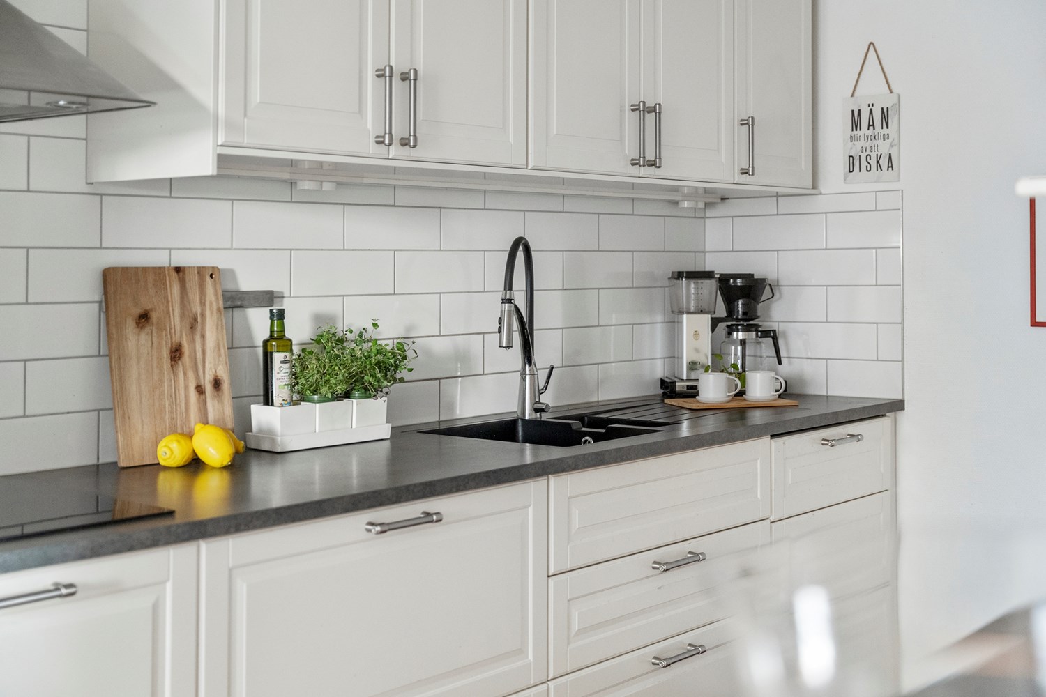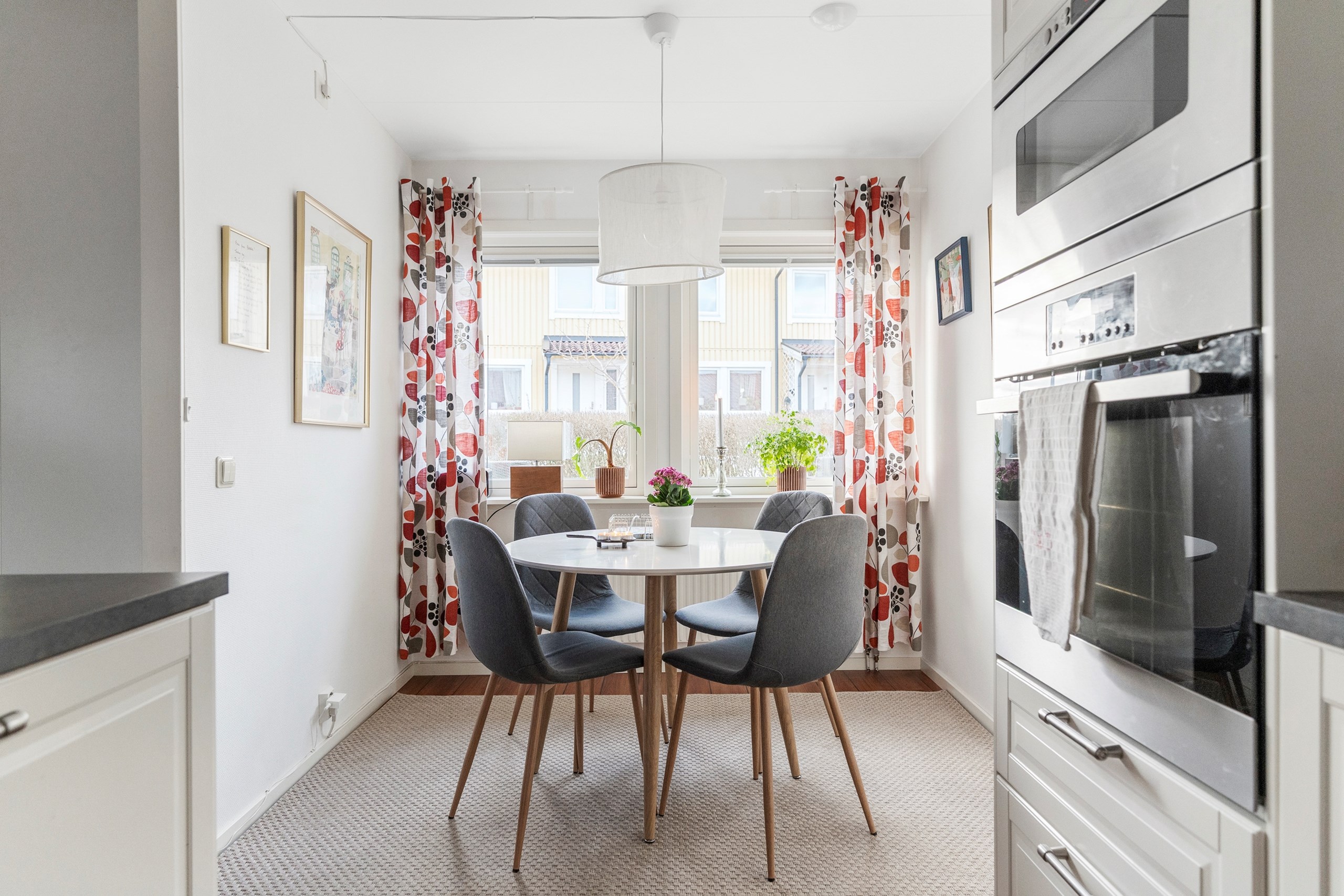 Trevligt kök med en delvis öppen planlösning med en härlig köksö ut mot vardagsrummet. Köket renoverades 2014 med vita köksluckor som erbjuder gott om förvaringsutrymmen, stora bänkytor samt en ljus och bra matplats. Inbyggd ugn (-14), inbyggd mikro (-14), häll (-16), fläkt (-14) samt kyl och frys (-14). Skeppsgolv (laminatgolv) och målade väggar. Ett härligt kök att umgås och laga mat i!