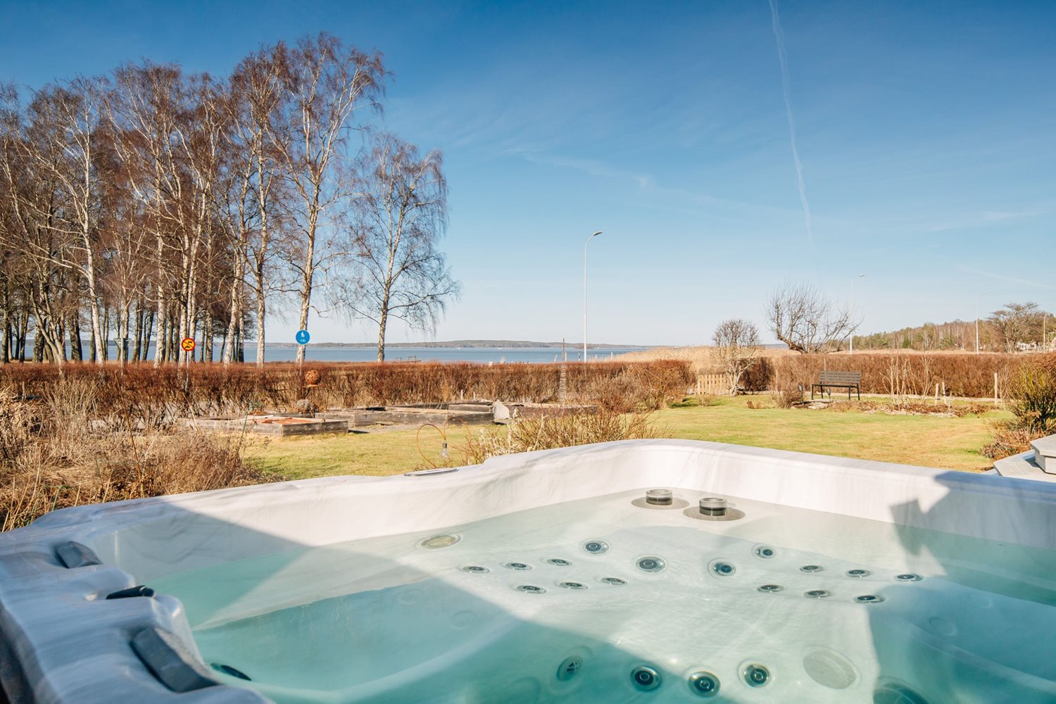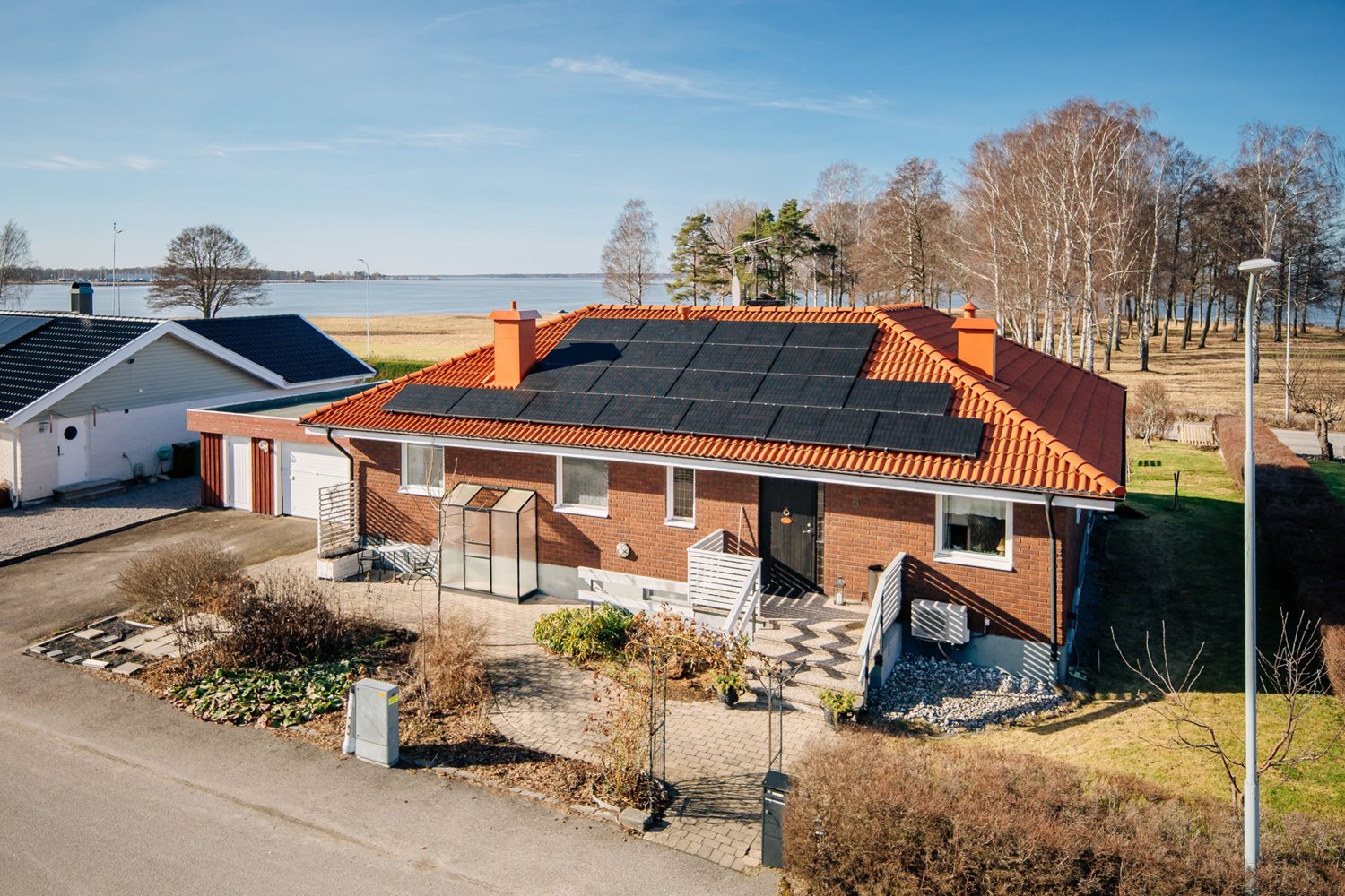 Redan när du kliver in möts du av en öppen och inbjudande hall som sätter tonen för hela hemmet. Blicken dras direkt genom huset mot vardagsrummet och redan här får du en skymt av den glittrande sjöutsikten som väntar på andra sidan.