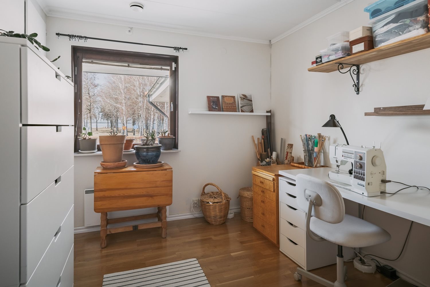 Rummet passar utmärkt som sovrum, gästrum eller hobbyrum – en flexibel yta som enkelt kan anpassas efter behov. Här får du en plats att dra dig tillbaka till, med sjön som stillsam fond. I samtliga sovrum ligger ekparkett som löper vidare från hallen.