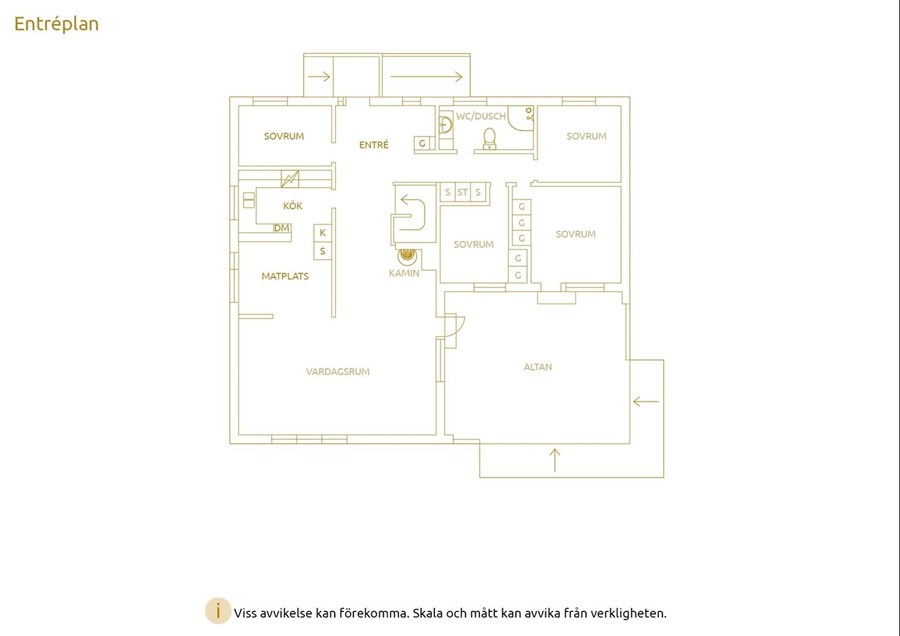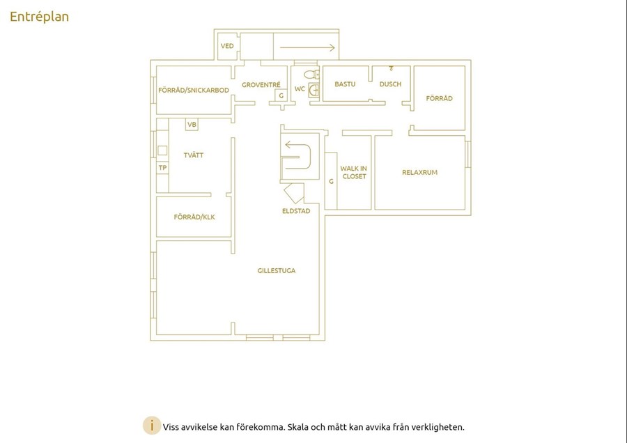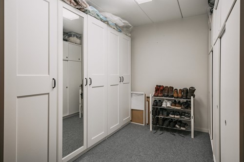 Större klädkammare som idag har en platsbyggd större garderob samt möjlighet till fler garderober. Heltäckningsmatta från 2022.